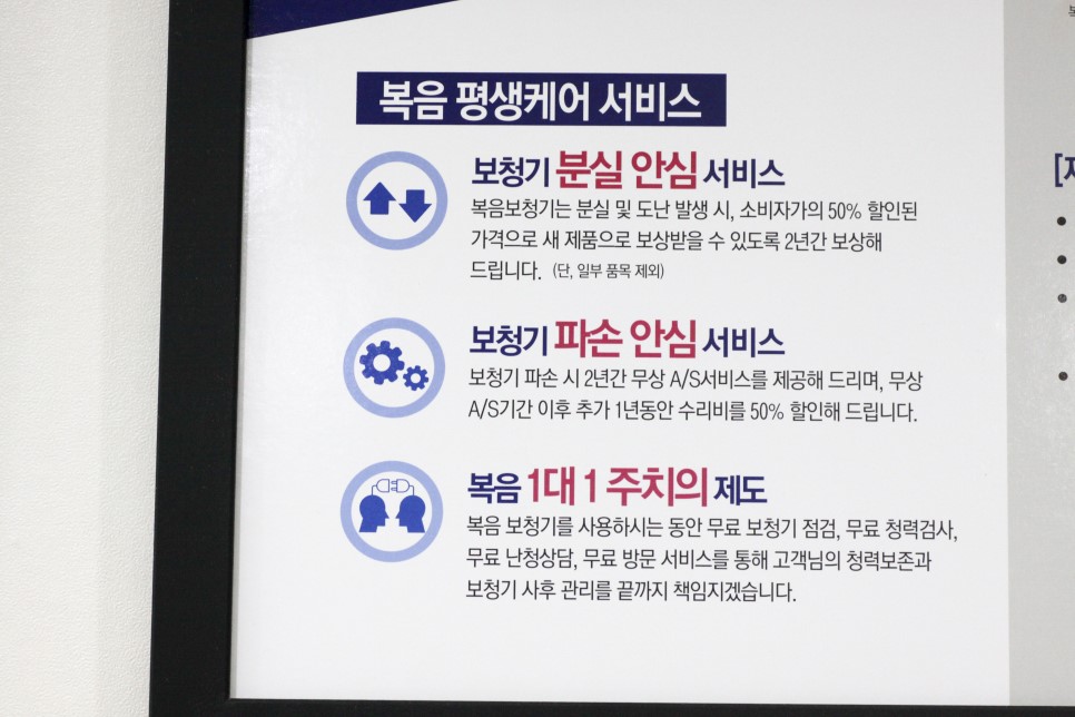 º¹À½º¸Ã»±â¸¦ »ç¿ëÇÏ´Â µ¿¾È ¹«·á º¸Ã»±â Á¡°Ë, ¹«·á û·Â°Ë»ç, ¹«·á ³­Ã» »ó´ãÀ» ÅëÇØ °í°´´ÔÀÇ Ã»·Â º¸Á¸°ú »çÈÄ °ü¸®¸¦ ³¡±îÁö Ã¥ÀÓÁö°Ú½À´Ï´Ù.